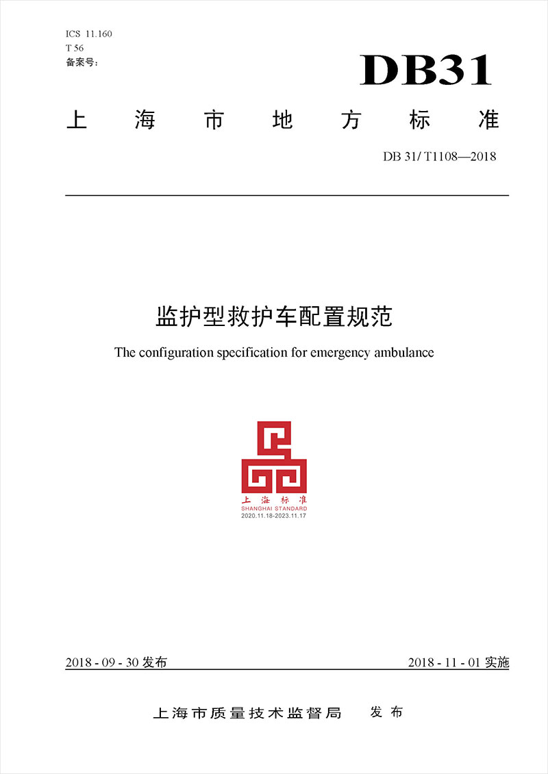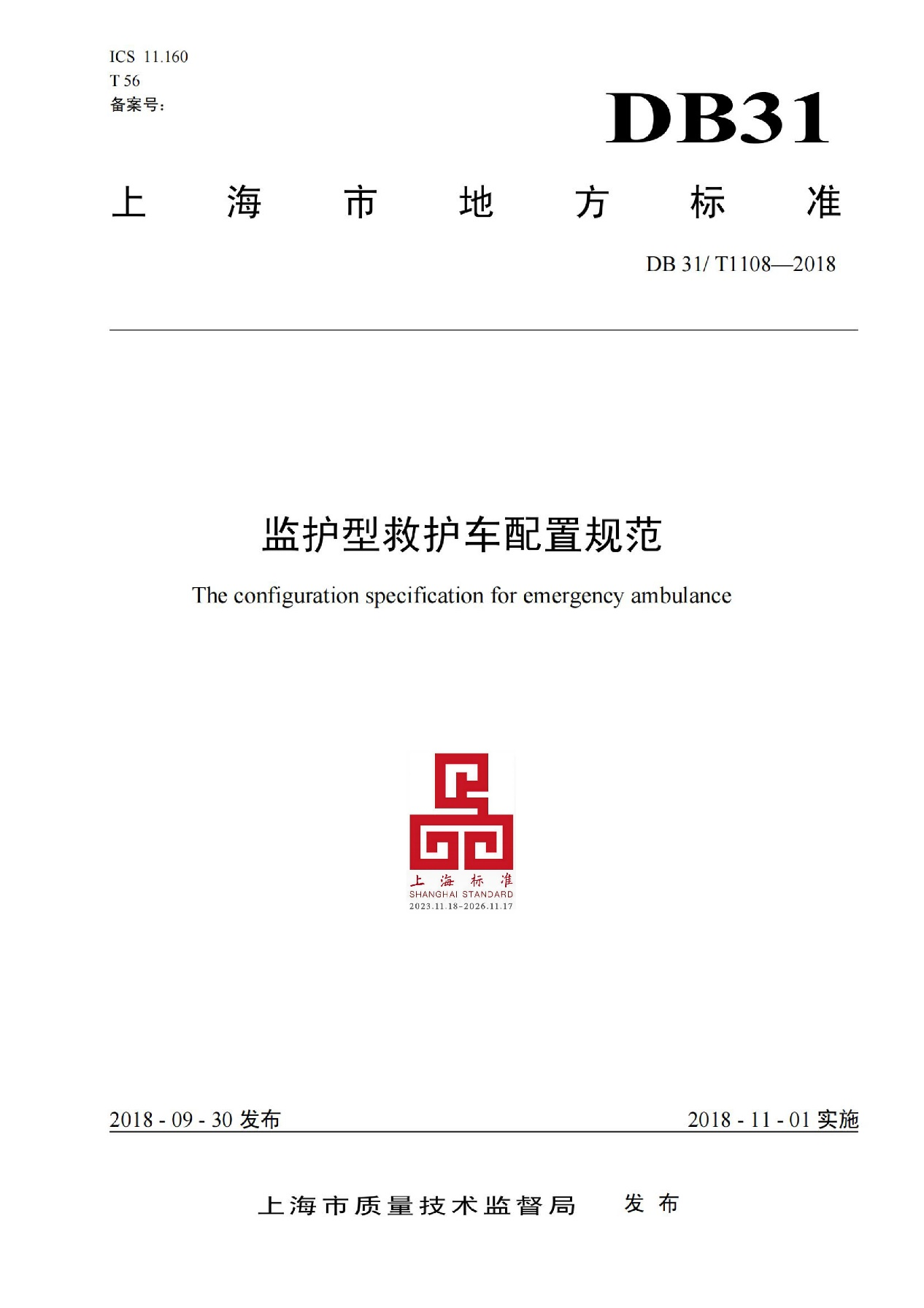 标准名称及编号:监护型救护车配置规范 (DB31/T 1108—2018)