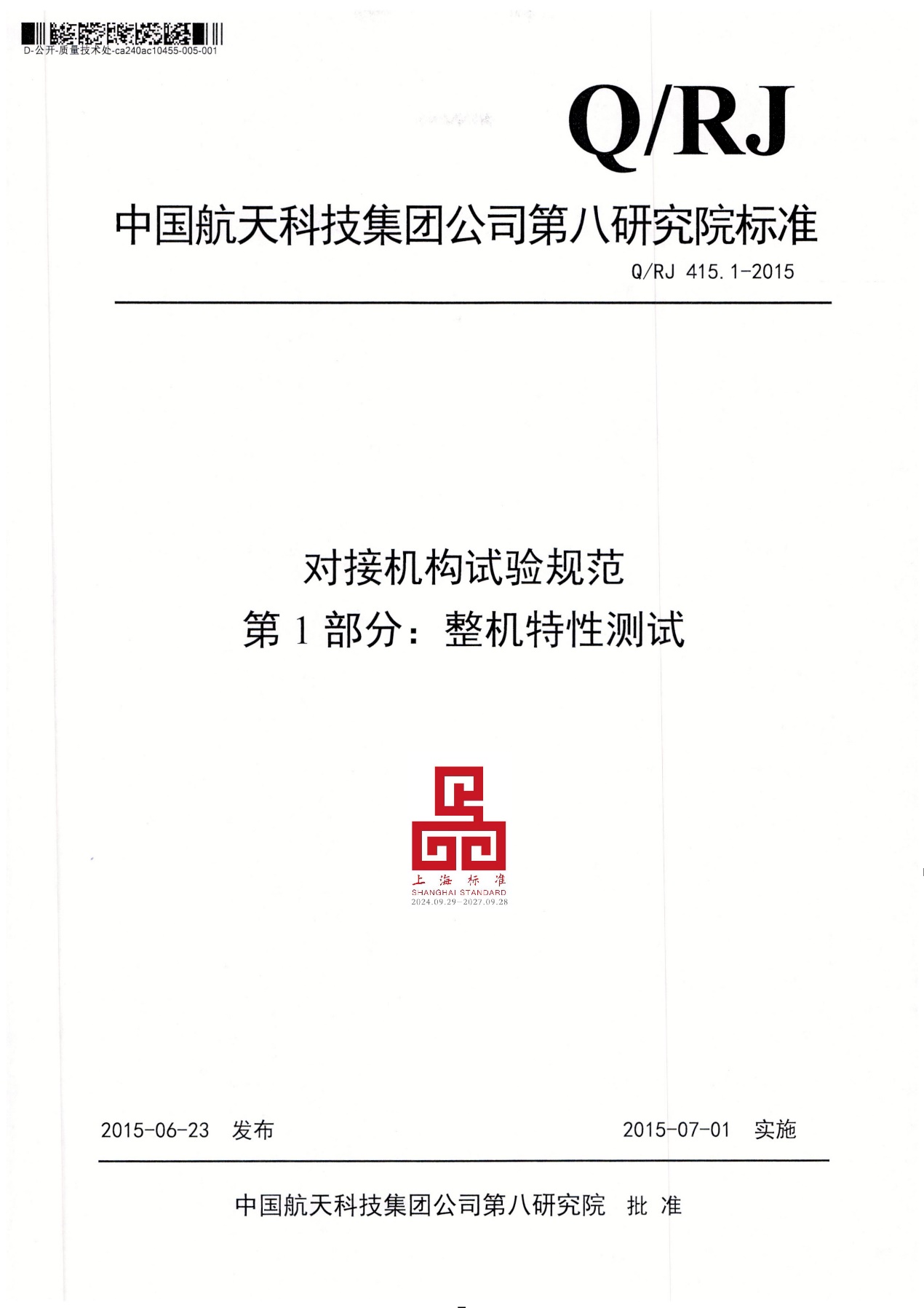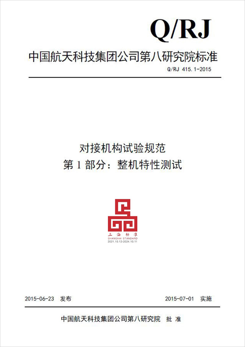 标准名称及编号:对接机构试验规范系列(Q∕RJ 415.1-Q∕RJ 415.4)