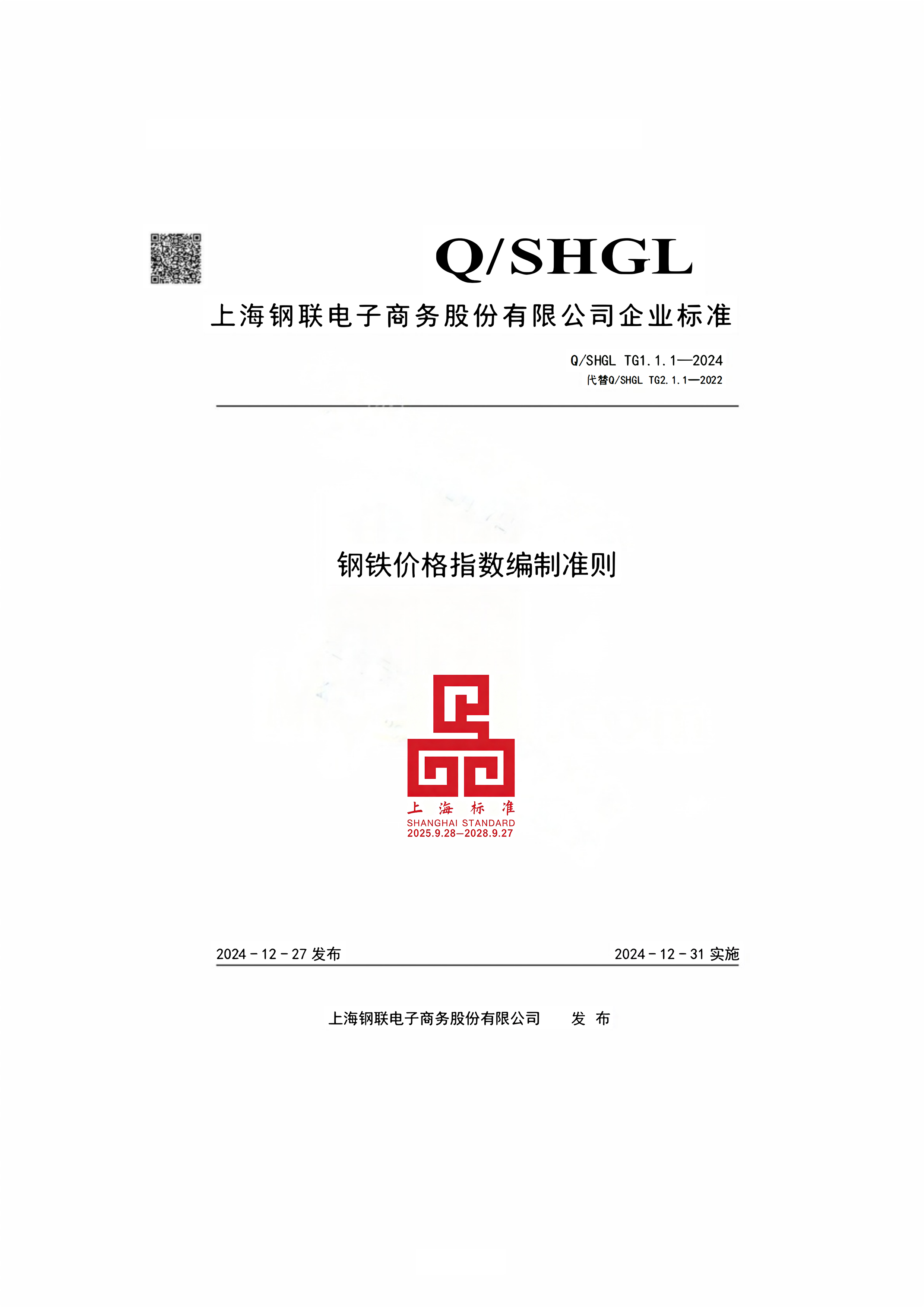 标准名称及编号:钢铁价格指数编制准则(Q/SHGL TG1.1.1-2024)