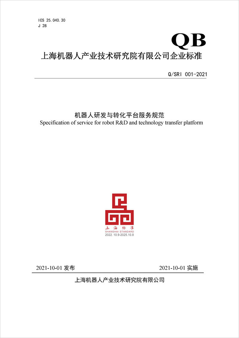 标准名称及编号:机器人研发与转化平台服务规范(Q/SRI 001—2021)
