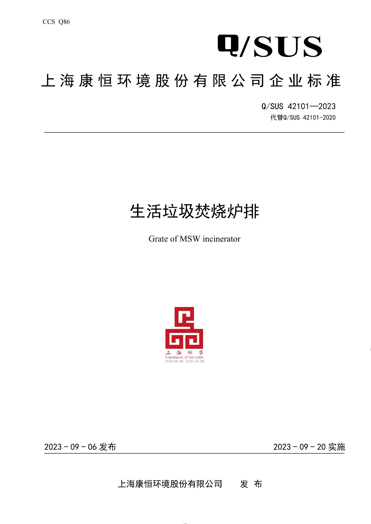 标准名称及编号:生活垃圾焚烧炉排(Q/SUS 42101-2023)