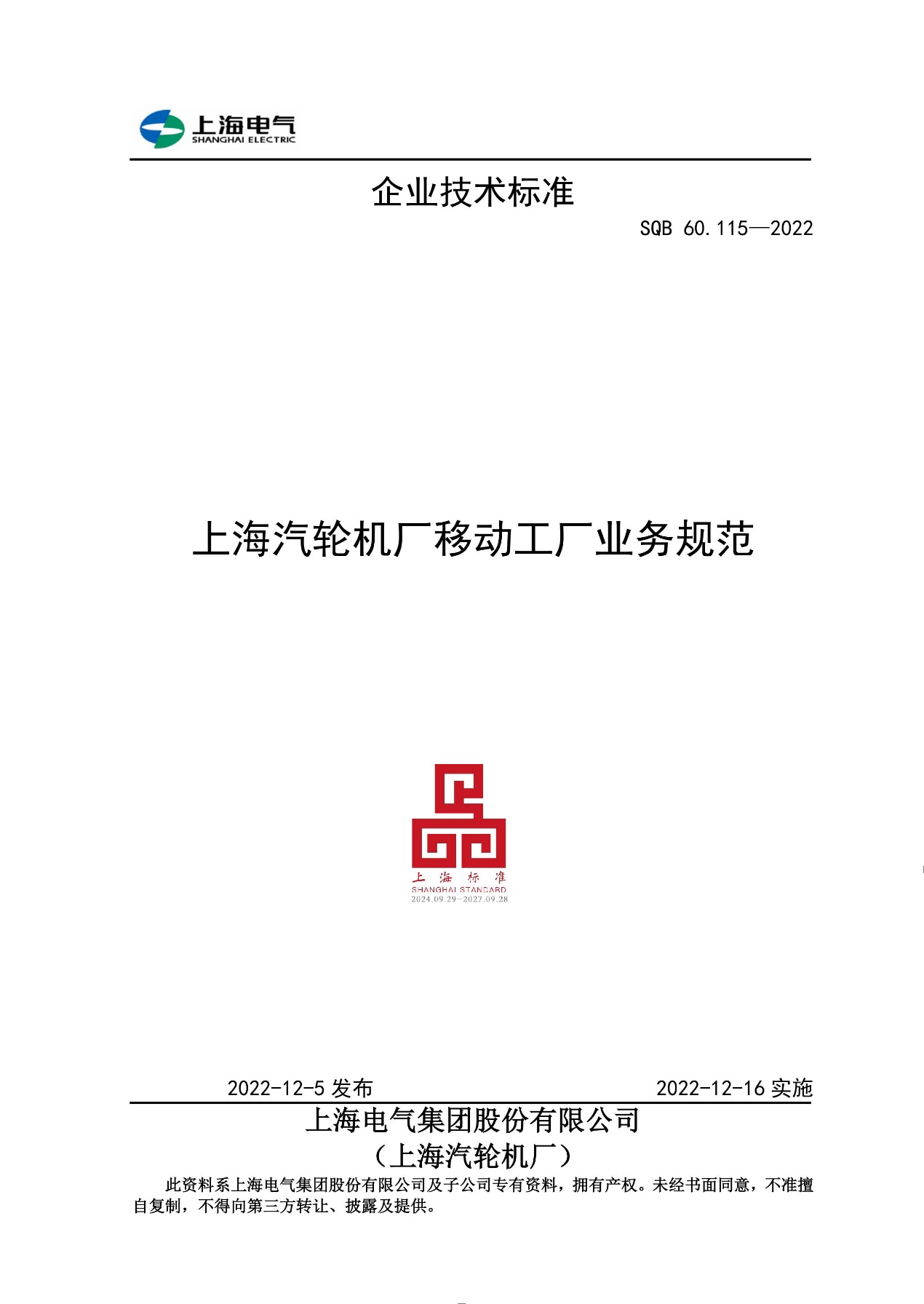 标准名称及编号:上海汽轮机厂移动工厂业务规范(SQB 60.115-2022)