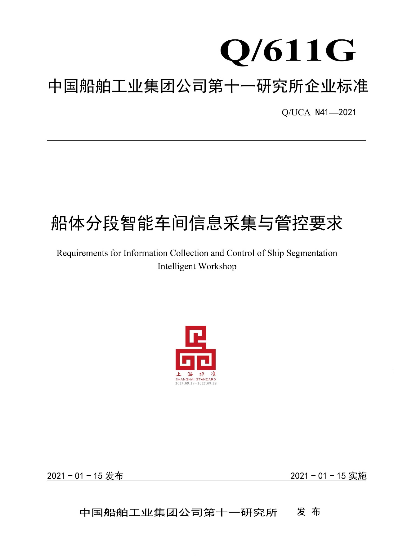 标准名称及编号:船体分段智能车间信息采集与管控要求(Q/UCA N41-2021)