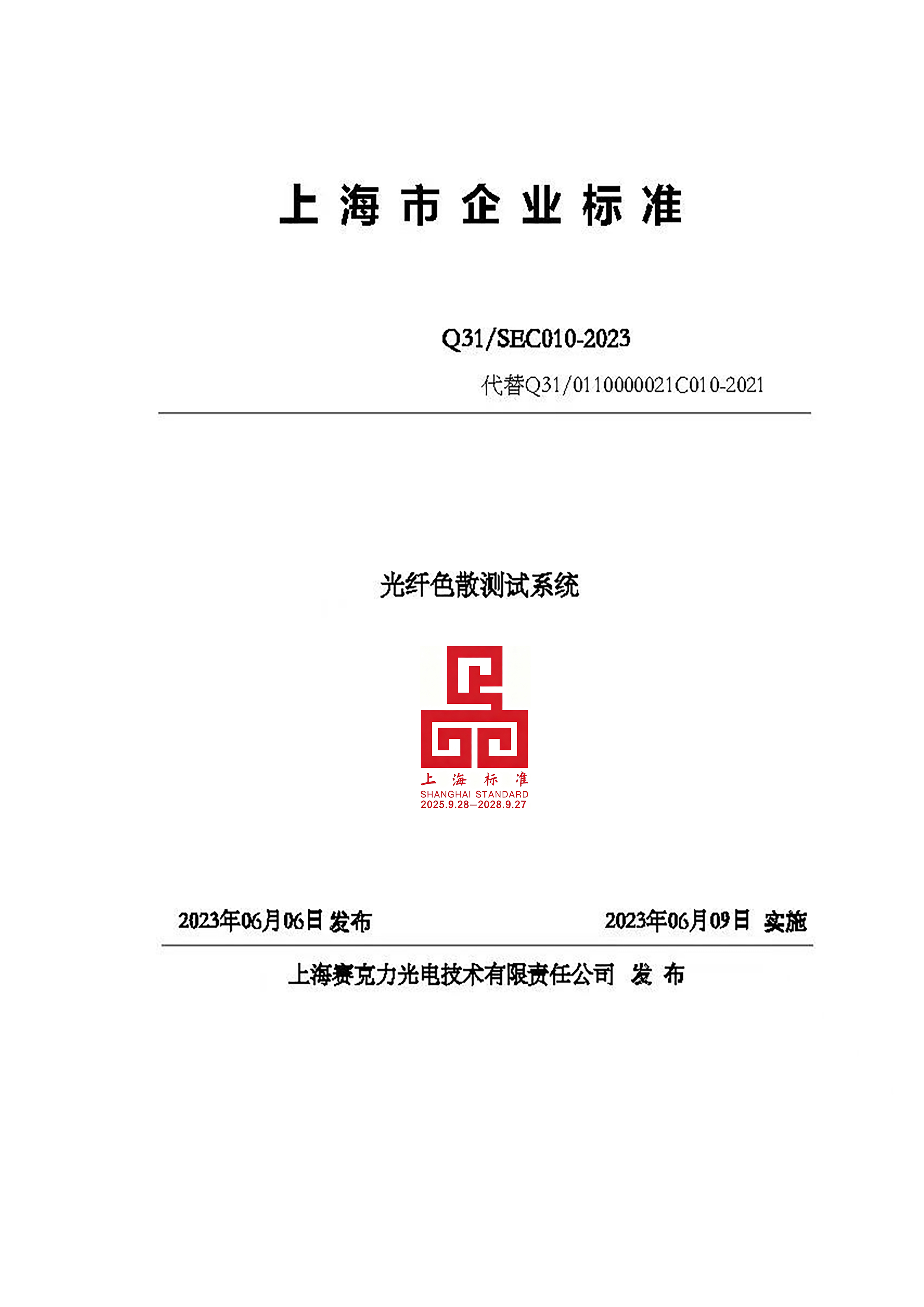 标准名称及编号:光纤色散测试系统(Q31/SEC010—2023)