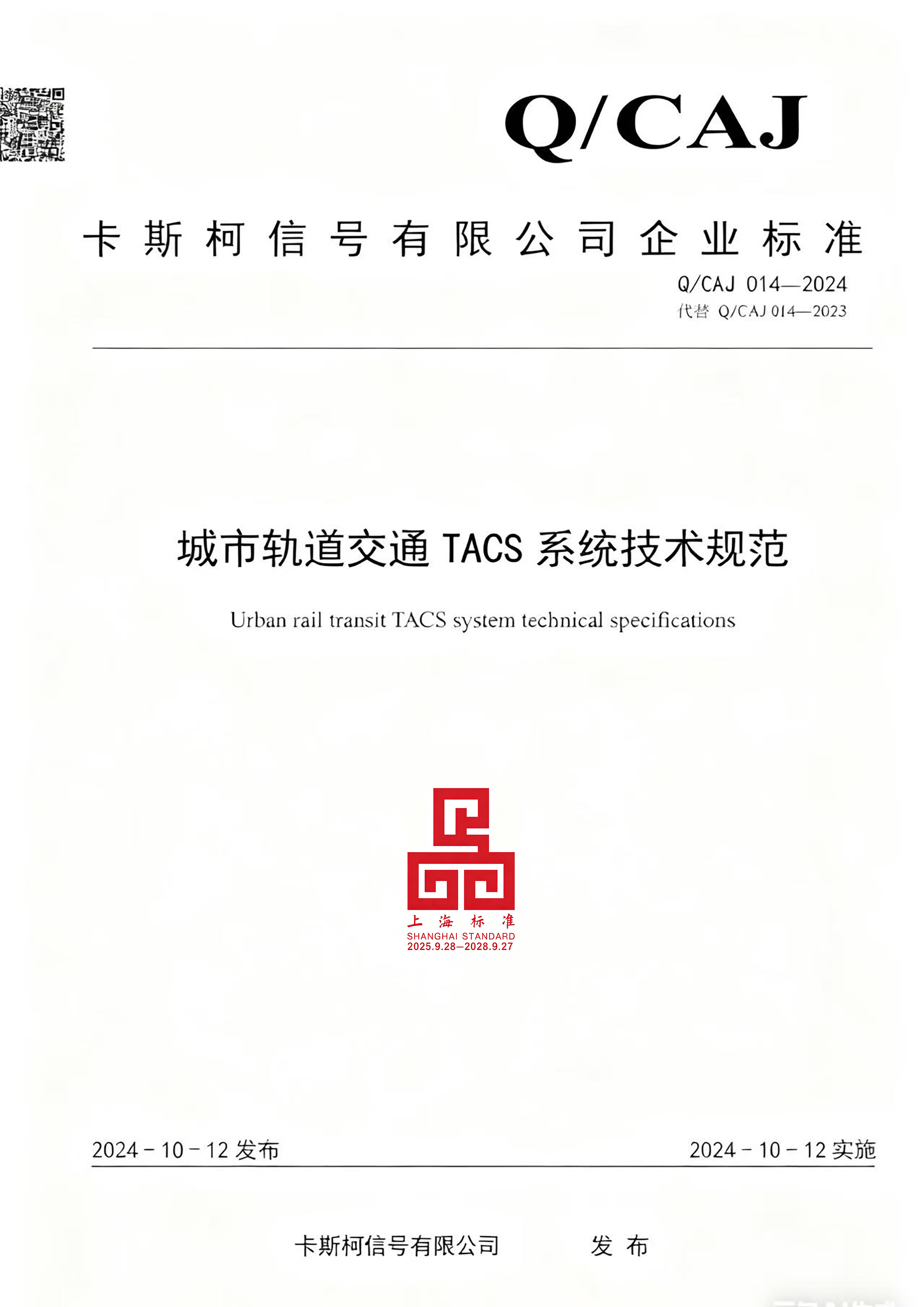 标准名称及编号:城市轨道交通TACS系统技术规范(Q/CAJ 014—2024)