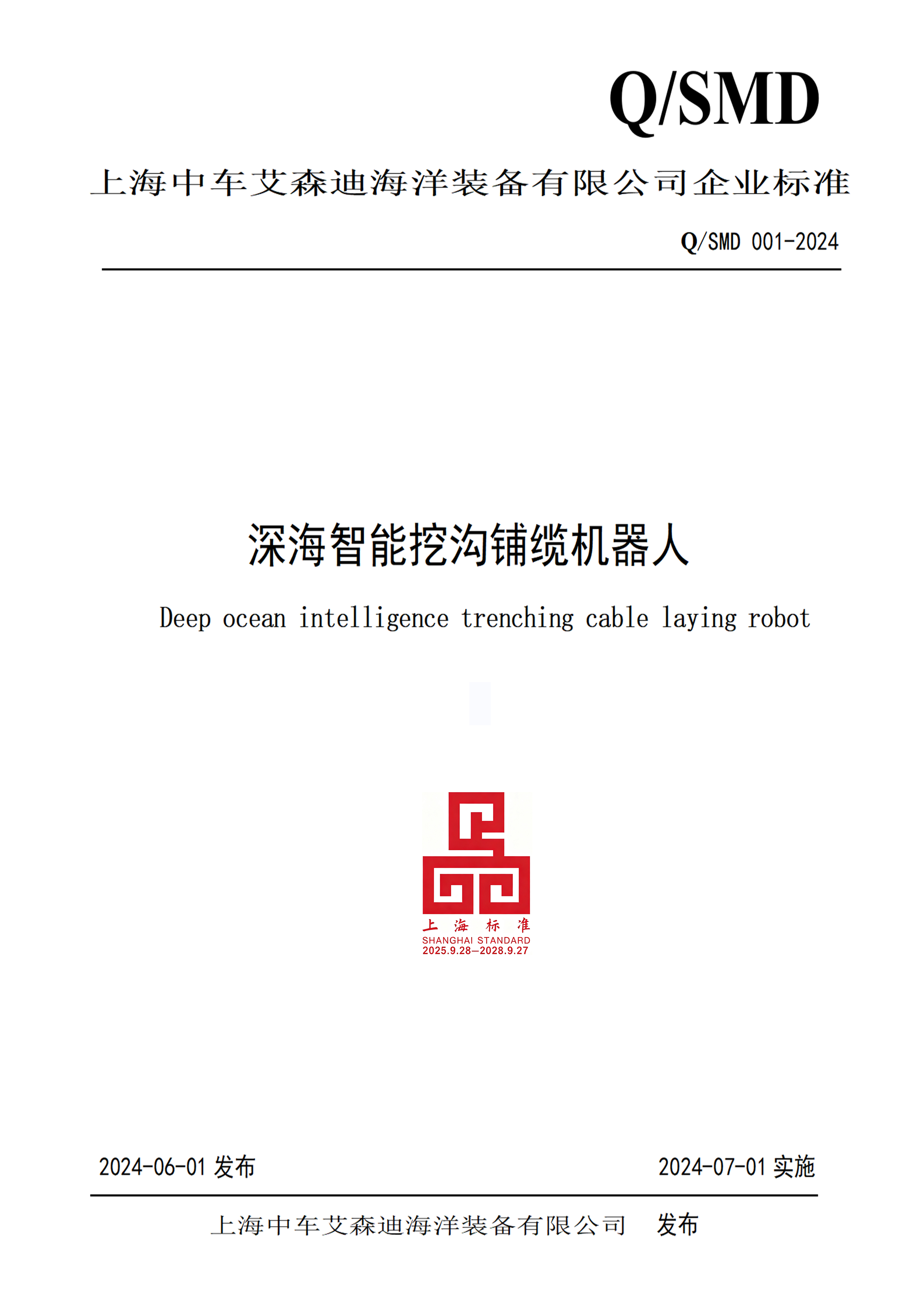 标准名称及编号:深海智能挖沟铺缆机器人(Q/SMD 001—2024)