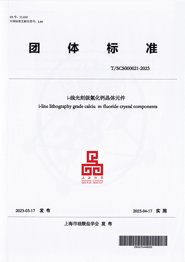 标准名称及编号:i-线光刻级氟化钙晶体元件(T/SCS000021—2023)