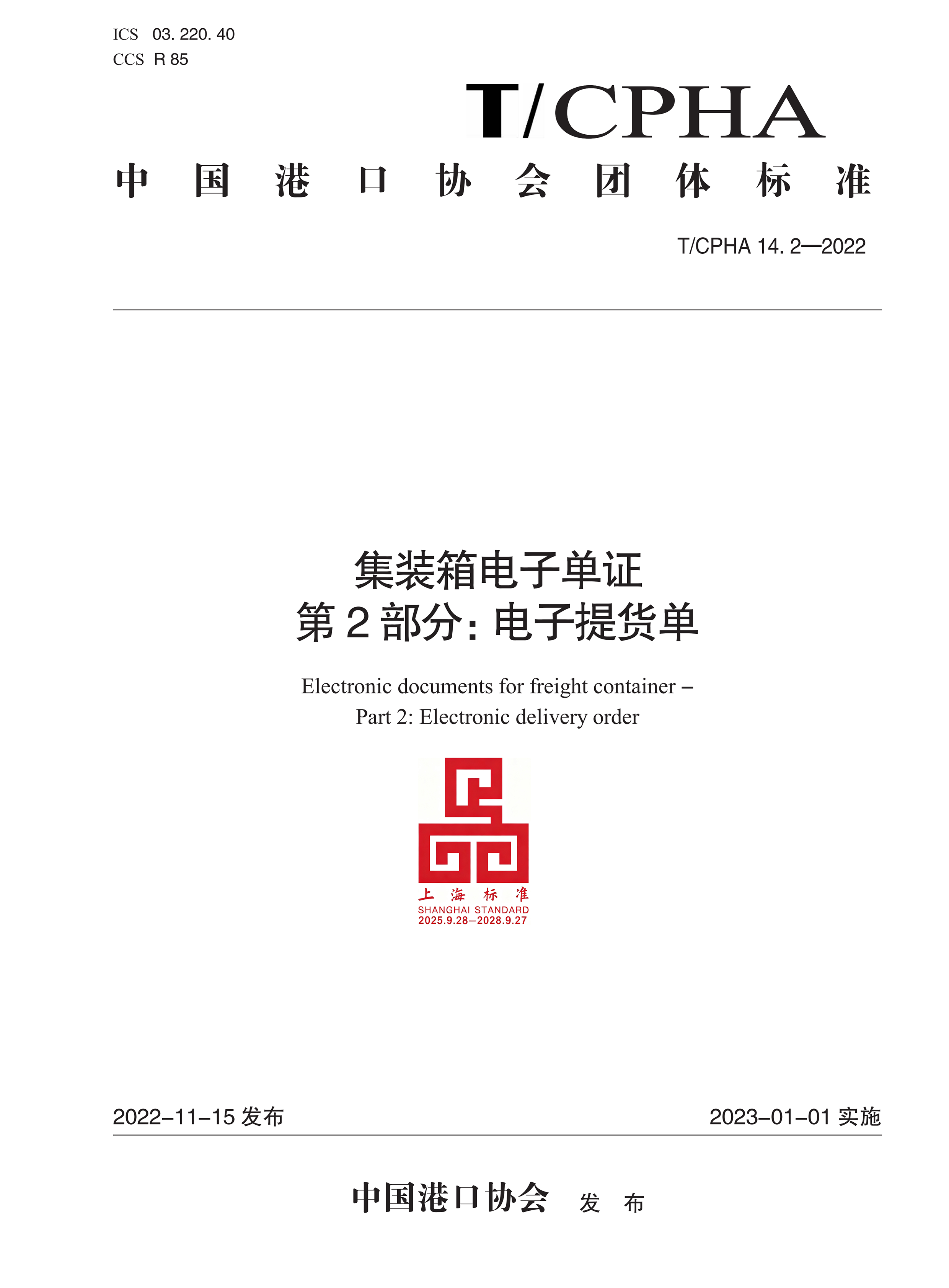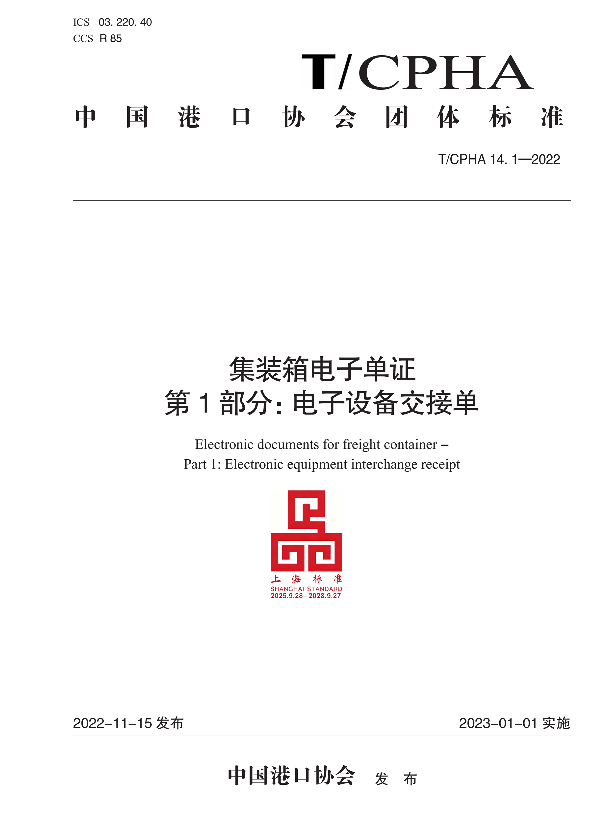 标准名称及编号:集装箱电子单证(T/CPHA 14—2022)