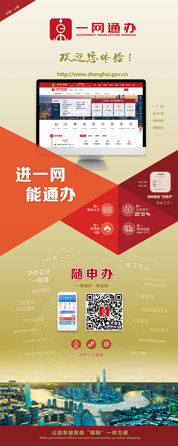 为提升上海政府治理能力现代化,落实《全面推进“一网通办”加快建设智慧政府工作方案》(沪委办发〔2018〕14号)、《上海市公共数据和一网通办管理办法》(上海市人民政府令第9号)等政策文件要求,上海市人民政府办公厅、上海市质量和标准化研究院承担起草了DB31/T 1113-2018《政务服务“一网通办”业务规范》地方标准,是全国政务服务“一网通办”第一份地方标准,体现了“掌上办”“指尖办”、分类引导服务、集成套餐服务、场景式服务、“四减”“两个免于提交”“高效办成一件事”等政务服务亮点,在政务服务事项管理、业务管理、服务便利化、数据支撑等方面达到国内国际领先水平,为上海政务服务“一网通办”建设提供了重要标准支撑。