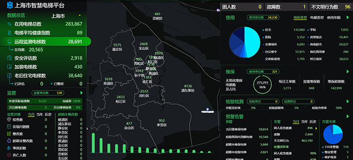 系统归集电梯全生命周期数据,可形成电梯大数据中心,为智慧电梯建设打下坚实的数据基础。打通现有电梯行政许可、检验检测、行政执法、移动监管等信息化系统,通过开展电梯维保信息备案、“上海智慧电梯码”张贴等工作全面清理电梯基础数据,大幅提升电梯数据准确率。充分运用信息化、物联网、大数据、人工智能等技术,拓展电梯应急信息来源渠道,完善电梯三级救援网络,基本形成一套数据牵引、协调高效、响应及时、部门联动的全市电梯应急救援处置的服务体系,有效提升了电梯应急救援处置效率和电梯突发事件的监管水平。