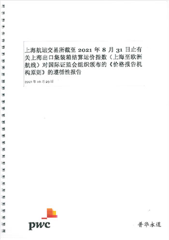 图2 SCFIS(上海-欧洲航线)成功通过国际知名审计机构普华永道关于国际证监会组织IOSCO制定《价格报告机构原则》(PRA原则)的独立鉴证