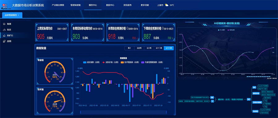 科技与数据的结合,让数据融合、分析、提取价值变得更为智能化,进而帮助企业转化为决策或行动。具体应用上已经深入钢铁企业业务决策场景,覆盖销售资源投放、采销经营复盘、采购决策、业绩管理等丰富情景,帮助用户增强市场动态感知、价格精细化管理、风险快速响应的能力,提升企业效益10%左右。