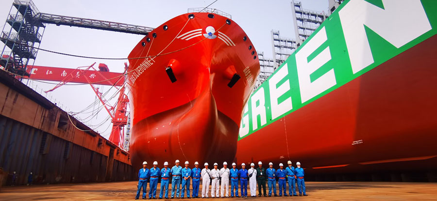 江南造船自行研发和建造的99000立方米VLEC的舱容为堪称行业通行标准“美国休斯顿航道主尺度包络线”限制条件下的最大载货容积,目前位居这一细分市场的领先地位。