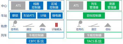 图3 CBTC系统与TACS系统设备构成对比